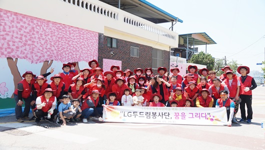 LG두드림봉사단은 봉사단원뿐만 아니라 봉사단원 가족, 문경시 비루빡 봉사단과 함께, 점촌초등학교 일대 노후된 담벼락을 사계절 내내 만개하는 봄꽃을 지역 주민들에게 선물했다.