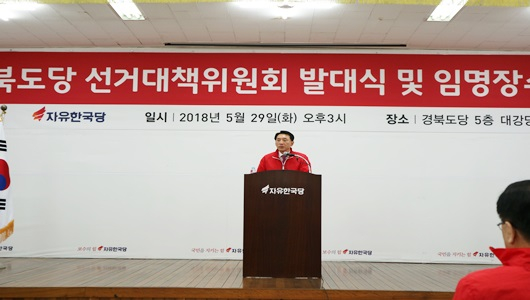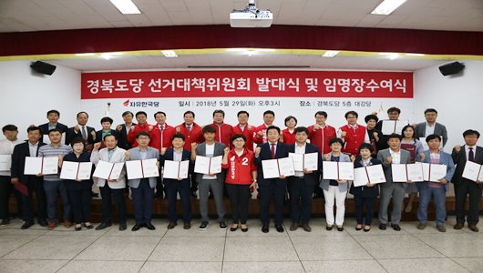 [경북=경북IT뉴스] 자유한국당 경북도당(위원장 김석기 국회의원)은 5월 29일 경북도당 강당에서 6.13 전국동시지방선거를 대비한 ‘자유한국당 경북선대위 발대식’을 가지고 선대위 조직 구성원들에게 선대위위촉장을 수여했다.