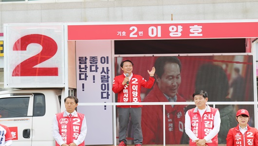 [구미=경북IT뉴스] 6.13 지방선거가 9일 앞으로 다가온 가운데 이양호 후보는 해평면 월요장을 찾아 유세를 벌였다. 이날 이 후보는 “대구취수원 구미이전을 핑계로 대구의 더불어민주당 국회의원이 5공단 분양을 가로막고 있다”며 “취수원 이전 반대 서명운동에 동참했고, 이전에 단 한번도 동의한 적이 없으며, 하늘이 두 쪽 나도 취수원 이전은 반대”라며, “구미시민의 재산권을 반드시 지켜 내겠다”고 강조했다.
