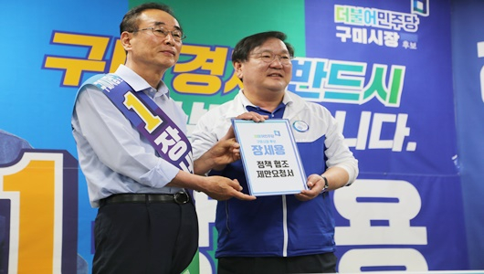 장세용 구미시장 후보, 김태년 민주당 정책위 의장과 정책제안 전달식