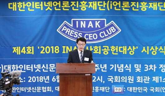 [경북IT뉴스] (사)대한인터넷신문협회(회장 이치수, www.inako.org)는 지난 6월 5일 국회의원회관 제2소회의실에서 창립 3주년 기념식과 함께 전국 1만 6천여 군소언론사들의 권익을 대변하는 가칭 '대한인터넷언론진흥재단(i언론진흥재단)' 발기인총회 및 '공로상, 최우수·우수기자상'시상식을 개최했다. 이날 개최된 가칭 '대한인터넷언론진흥재단(i언론진흥재단) 발기인총회'에서는 초대 이사장(발기인 대표 겸 회장)으로 현 사단법인 대한인터넷신문협회 이치수 회장(현 세계청년리더총연맹 상임고문 겸 세계연맹기자단 회장, 국제정책연구원 이사장)을 선출하고, 사업계획 승인의 건과 예산·결산 승인의 건, 정관승인의 건 등 모든 안건을 통과시켰다. 이치수 초대 이사장은 이날 수석부이사장(수석부회장), 부이사장(부회장) 사무총장 및 전국지회장, 제1특별전략위원회, 제2특별전략위원회, 제3특별전략위원회 위원장 등 임원을 선임하고 전국 1만 6000여 군소언론사 관계자들에게 보내는 성명서를 발표했다. 이치수 초대 이사장은 이날 성명서에서 "전국 1만 6,000여 군소언론사들의 권리를 찾기 위해 출범한 가칭 '대한인터넷언론진흥재단(i언론진흥재단)'의 앞길을 여는데 적극 동참하여 우리의 단합된 힘을 모아달라"고 호소했다. 협회 창립 3주년 기념식과 함께 진행된 이날 행사에서는 협회 소속 회원사 대표를 대상으로 한 '2018 공로상' 시상식과 회원사 소속 기자를 대상으로 한 '2018 최우수·우수기자상' 시상식도 함께 개최했다. 한편, (사)대한인터넷신문협회는 지난 2015년 3월 10일 한국프레스센터 19층 외신기자클럽에서 대한인터넷신문, 월드얀, 약사공론, 시선뉴스, 정치닷컴, 글로벌뉴스통신, IBN한국방송, 로봇신문, 뉴스컬쳐, 아시아타임즈 등 61개 회원사가 모여 창립했다.