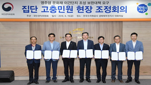 국민권익위원회의(이하 국민권익위) 주재로 지나 6월 15일 열린 한국수자원공사 경북북부권지사 현장 조정회의에서 수몰 지역 문화재 소유자들이 “문화재 이건단지 조성 보완대책”을 요구하며 제기한 집단 민원이 영주시, 한국수자원공사, 관계기관간 중재로 조정·합의가 되었기 때문이다.