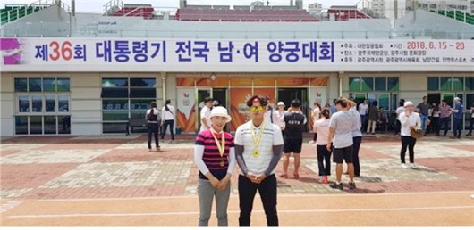 [예천=경북IT뉴스] 예천군청 양궁실업선수단(감독 문형철)이 6월 20일 광주 국제양궁장에서 열린 ‘제36회 대통령기 전국 남·녀 양궁대회’에서 윤옥희, 장채환이 팀을 이룬 혼성 단체전에서 우승을 차지했다.