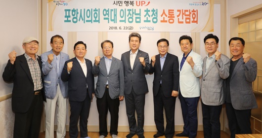 이강덕 시장은 지난 13일 지방선거를 통해 재선된 후 처음 가진 이날 모임에서 “오늘의 포항시로 발전하는 과정에서 시민을 대표하는 민의기관으로 시의회가 보여주신 헌신과 노력에 깊은 감사를 드린다.”면서 “지역의 원로로서 우리 포항이 더 큰 도약을 통하여 발전을 거듭할 수 있도록 언제라도 고견을 들려주시길 바란다.”고 당부했다.