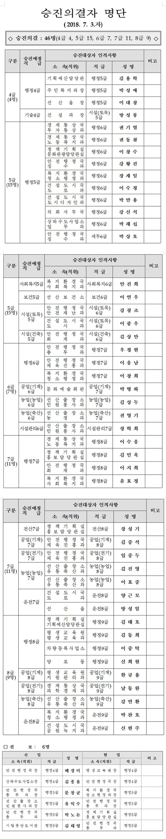 승진의결 52명(4급 4, 5급 15, 6급 7, 7급 11, 8급 9, 전보 6명)