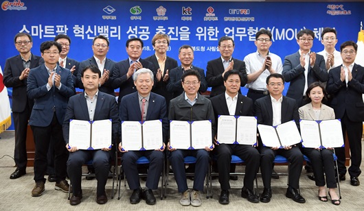 [경북=경북IT뉴스] 경상북도는 7월 6일 도청 회의실에서 경북도, 상주시, 경북대학교, KT, 롯데마트, 한국전자통신연구원 간 스마트팜 혁신밸리 성공 추진을 위한 업무협약(MOU)을 체결했다.
