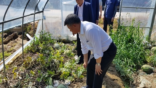 [구미=경북IT뉴스] 장석춘 국회의원이 7월 14일 37도 폭염에도 불구하고 최근 폭우로 피해를 입은 농촌 현장을 방문해 농민의 애로사항을 살피고 대책마련을 강구했다.