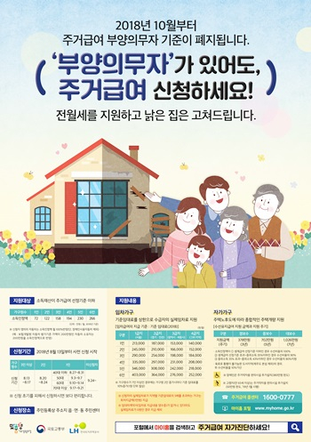 2018년 10월부터 주거급여 부양의무자 기준 폐지로 13일부터 사전신청 접수