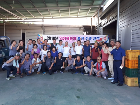 [의성=경북IT뉴스] 경북 의성군(군수 김주수)은 지난 14일 옥황상제 복숭아 작목반 선과장에서 홍콩시장 수출을 위한 선적 행사를 가졌다.