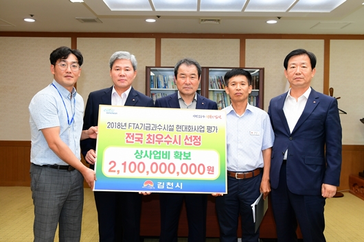 [김천=경북IT뉴스] 농림축산식품부가 주관한 2018년도 FTA 과수고품질 시설현대화사업 연차평가에서 김천시가 최우수 시로 선정돼 상 사업비 21억원와 인센티브 사업비 1300만원을 지원받는다.