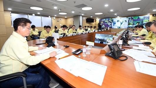 기상청 발표에 의하면 제19호 태풍은 23일(목) 15시 광주 서쪽 약 110km 부근 해상을 지나 24일(금) 03시 서울 동쪽 부근을 통과하는 것으로 전망되어 산사태 및 침수우려가 된다는 판단에 따라 긴급 대책회의를 갖게 됐다.