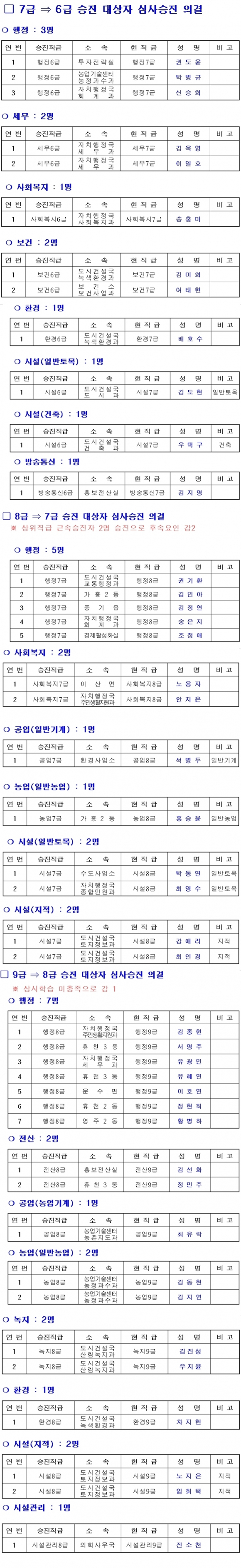 영주시 승진내정자 명단 발표 (2018.8.30 字)