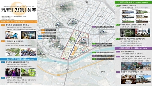 3일 성주군에 따르면 사업대상지는 성주전통시장과 성주공용버스터미널을 거점으로 하는 11만 4600㎡의 구역에 스마트교류거점 육성사업, 도시농부 역량강화사업, 스마트산업 창출사업, 스마트빌리지 조성사업 등 4개 단위사업 10개 세부사업에 총사업비 134억 원이다.