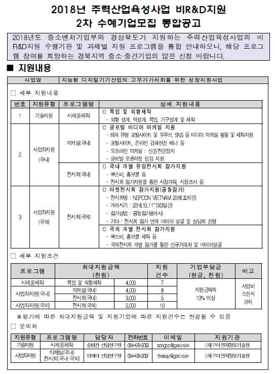 나. 주요특징 : 경북지역 지능형디지털기기 관련 8개사 모집