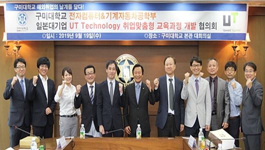 [구미=경북IT뉴스] 구미대학교(총장 정창주)와 일본 (주)UT테크놀로지(대표 사쿠라이 토시히코)가 학생들의 일본 취업 확대를 위해 손을 잡았다.