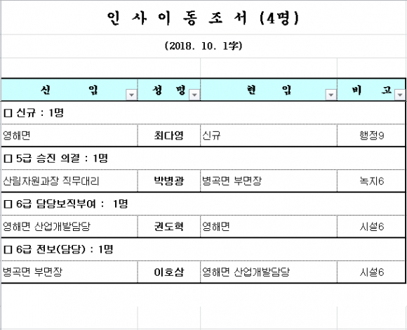 영덕군 인사발령