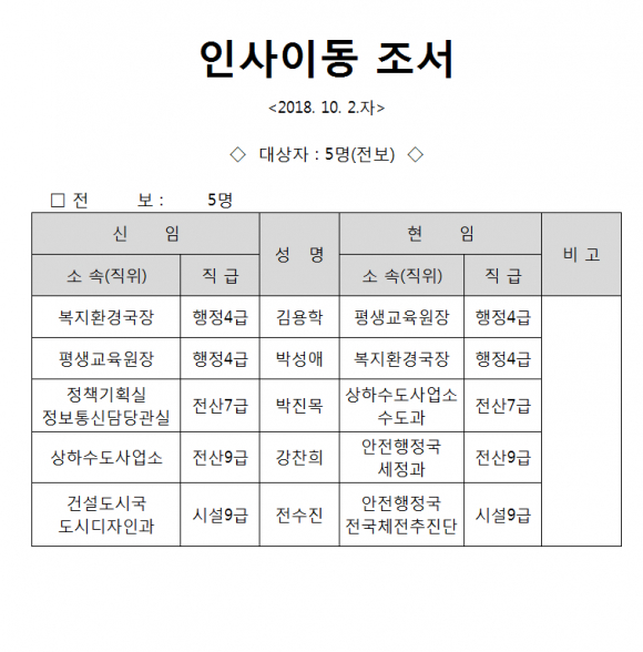 [구미=경북IT뉴스] 구미시는 10월 2자 인사이동 조서를 발표했다.