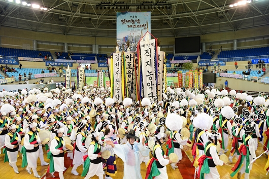 [김천=경북IT뉴스] 경상북도무형문화재 제8호 금릉빗내농악의 활성화 및 전승보존을 위한 제6회 빗내농악 페스티벌이 지난 5일 김천실내체육관에서 관내 22개 읍·면·동 농악단과 시민이 관람하는 가운데 열렸다.