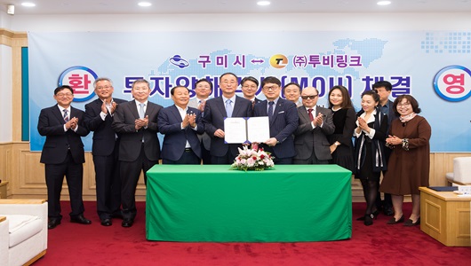 이날 체결식에는 장세용 구미시장, 김태근 구미시의회 의장, 장일환 투비링크 회장, 김규한 대표를 비롯 구미경제관련 기관·단체장, 회사 임직원 등이 참석했다.