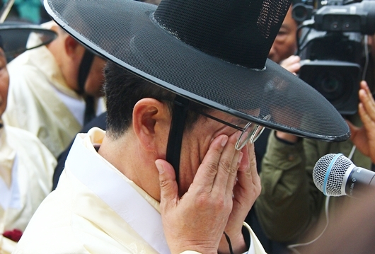이철우 도지사, 추도사 낭독 도중 눈물 보여