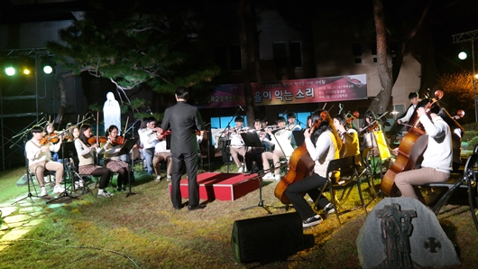 [구미=경북IT뉴스] 선산고등학교는 오케스트라 창단 3년을 맞아 지난 31일 선산성당 솔밭에서 지역민을 위한 예술문화체험의 장을 마련했다.