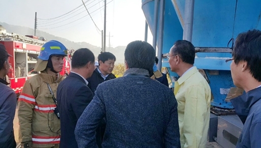[구미=경북IT뉴스] 장세용 구미시장이 11월 2일 오후 2시 30분경 선산읍 관내 돈사에서 발생한 화재 현장을 방문해 현황을 살피고, 관계자들을 위로 격려했다.