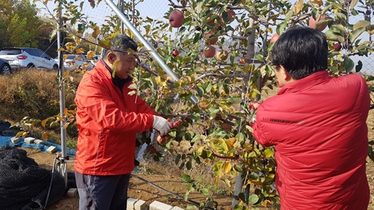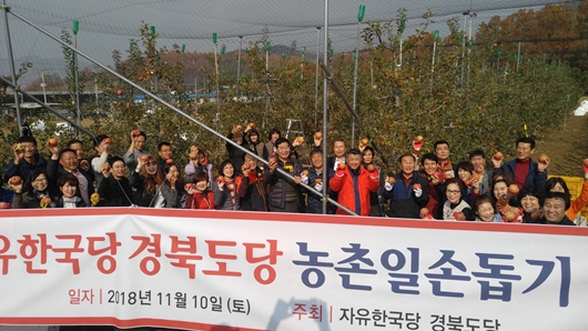 [구미=경북IT뉴스] 자유한국당 장석춘 경북도당위원장은 지난 10일 도당당직자들과 함께 구미지역 과수 농가를 방문해 사과따기 봉사활동을 펼쳤다.