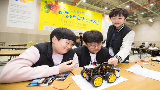 지난 10일 마지막 날에는 꿈나무로봇경기대회가 구미코에서 열려 전국 초·중·고 학생과 가족 등 400여 명이 참여해 로봇업사이드다운, 자율밀어내기, 레이싱로봇, 로봇코딩 프로그래밍 등 4개 분야에 걸쳐 열띤 경쟁도 벌였다.
