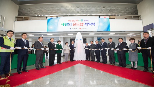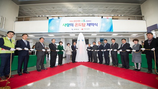 구미시는 ‘희망2019나눔캠페인’ 의 출범을 알리기 위해 시청 로비에 사랑의 온도탑 제막을 시작으로 본격적인 활동에 나섰다.