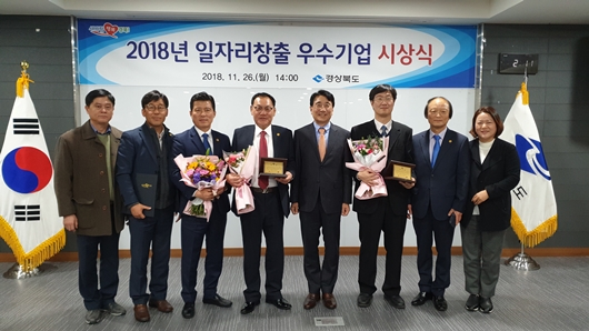 [구미=경북IT뉴스] ‘2018년 경상북도 일자리창출 우수기업’ 선정에 ㈜LB루셈과 태웅이 1년 동안 신규 고용 증가인원 및 증가율, 정규직 비율, 고용유지율 부문에서 우수한 실적이 인정돼 대상과 최우수상의 영예를 안았다.