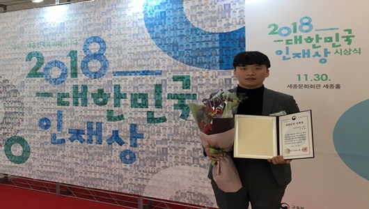 [구미=경북IT뉴스] 금오공과대학교 이청화(기계시스템공학과 석사과정 남·27) 학생이 ‘2018 대한민국 인재상’에 선정됐다.
