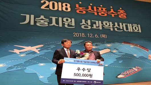[상주=경북IT뉴스] 상주시 화동면 산떼루아영농조합법인은 지난 6일 농촌진흥청에서 열린 ‘농식품수출 기술지원 성과확산대회’에서 우수상을 받았다.
