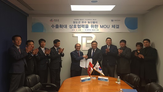 6일 현지에서 청도군과 티-브라더스는 업무협약(MOU)을 맺고, 청도군 우수 농특산물에 대한 수입을 지속해서 늘려나가기로 했다.