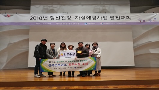 [칠곡=경북IT뉴스] 칠곡군은 지난 11일 경주 현대호텔에서 개최한 ‘경상북도 2018년 정신건강사업 발전대회’에서 최우수 기관으로 선정됐다.