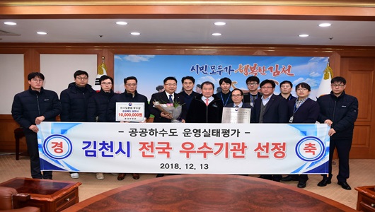 [김천=경북IT뉴스] 김천시가 환경부에서 실시한 ‘2018년도 공공하수도 운영관리 실태평가’에서 전국 우수기관으로 선정됐다. 이에 따라 13일 환경부로부터 인증패와 시상금 1천만원을 수상했다.