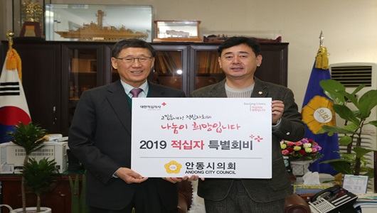 [안동=경북IT뉴스] 안동시의회(의장 정훈선)는 17일 의장실에서 대한적십자사 경북지사(회장 강보영)에 2019년도 적십자 특별회비를 전달했다.