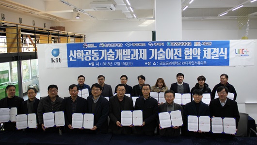 [구미=경북IT뉴스] 금오공과대학교가 19일 교내 kit디자인스튜디오에서 ‘2018 산학공동 기술개발과제 기술이전 협약식’을 가졌다.