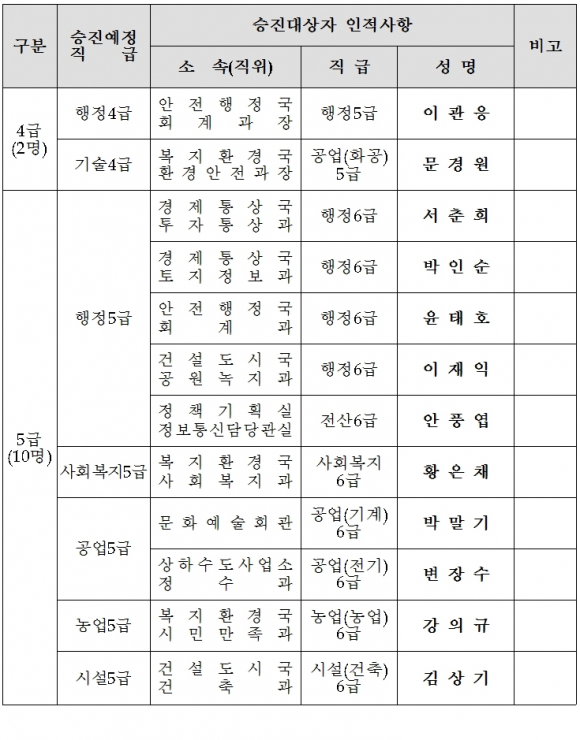[구미=경북IT뉴스] 구미시가 12월 24일자 승진의결자 명단을 발표했다.