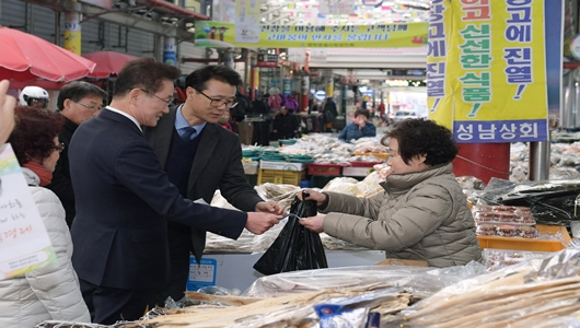 최기문 영천시장은 상인들을 격려하며 “전통시장 활성화를 위해 친절하게 고객을 맞이하고 물가안정에도 적극 동참해 줄 것.”을 당부했다.