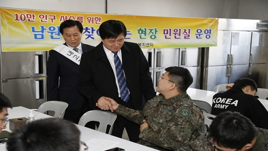 이날 남원동 행정복지센터(동장 장운기) 직원들은 부대를 방문해 전입 군인들에게 전입지원금 외 시에서 제공하는 다양한 전입 혜택을 홍보했다. 또 전입신고 시 장병들에게 건강보험료와 주민세가 추가로 부과되는 일이 없다는 점도 안내했다.