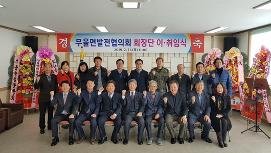 이재근 무을면장은 새로 출범한 제10기 무을면 발전협의회 회장단 모두에게 축하인사를 전하면서 ”기해년 황금돼지처럼 풍요롭고 넉넉한 마음가짐으로 무을면민의 복리증진을 위한 일꾼들이 돼 주길 바란다.“는 기대와 함께 지난 2년간 고생하신 윤대동 회장에게 큰 감사의 말씀을 전했다.
