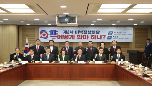 이어, 나경원 원내대표는 축사를 통해 “나쁜 합의보다 합의 결렬이 낫다는 생각이 들었다”며, “우리 정부는 장밋빛 전망 아래 미국과 북한 사이에서 진정성 있는 중재를 한 것이 아니라 북한의 대변인 노릇만 한 것이 아닌가 하는 의문이 든다”고 언급했다. 또한, “우리 정부가 북한의 영변 핵시설 외에 다른 핵시설의 존재를 알았다면 대국민 사기극이고, 몰랐다면 외교적 무능을 자인한 것이라며 외교 안보 라인이 책임을 져야 한다”고 토로했다. 발제자로 나선 조태용 전 외교부 차관은 “제2차 미북정상회담에 앞서 빅딜, 스몰딜 등 여러 이야기가 있었지만 결국 노딜로 결정됐다”며, “일반적으로 정상회담 결렬은 나쁜 것으로 평가받은 것과 달리, 이번 회담에서는 제1차 미북정상회담 이후 탈선했던 북한 비핵화 열차가 정상 궤도로 복구되는 천재일우의 기회”라고 주장했다.