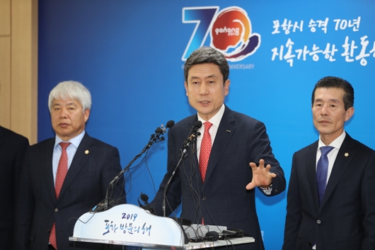 [포항=경북IT뉴스] 이강덕 포항시장은 21일 시청 브리핑룸에서 포항지진과 지열발전의 연관성에 관한 정부조사연구단 결과 발표에 따른 입장을 언론을 통해 밝히며 “피해주민에 대한 실질적 배상과 함께 침체된 지역경제 부양 대책을 마련해야 한다.”고 강조했다.