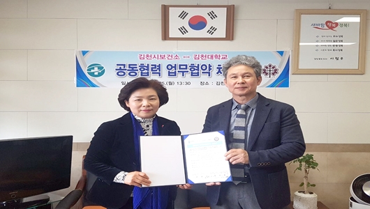 [김천=경북IT뉴스] 지난 25일 김천대학교 스포츠재활학과와 김천시보건소가 ‘김천시 건강생활실천을 위한 공동업무 협약’을 체결했다.