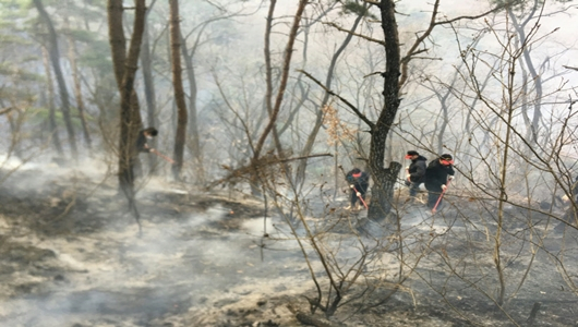 구미시 대망리 왕산골 산불..밤새 15㏊ 태우고 진화