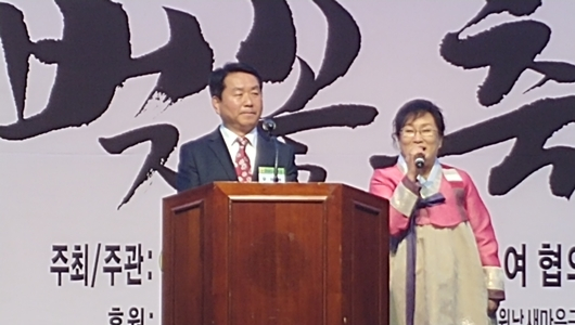 우광환 선주원남동 새마을회장(좌), 박나현 새마을부녀회장(우) | 우광환 선주원남동 새마을지도자회장과 박나현 새마을부녀회장은 인사말을 통해 선주원남 금오산 벚꽃축제에 참여해 준 관계자 및 시민들에게 감사의 인사를 전하고, 행사를 위해 봉사하는 회원들의 노고에 고마움을 표했다.
