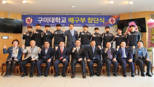 구미대는 4일 경북 구미시 LG게스트하우스에서 창단식을 가졌다. 창단식에는 정창주 총장, 장세용 구미시장을 비롯 백승주 국회의원, 김태근 구미시의장과 시·도의회 의원, 대한배구협회 관계자, 관내 초·중·고 배구부 선수와 학부모 등 200여 명이 참석했다.