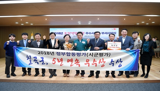 [칠곡=경북IT뉴스] 칠곡군은 16일 경북도청 안민관에서 열린 ‘2018년도 도정역점시책추진 시군평가’에서 5년 연속 우수상을 수상했다.
