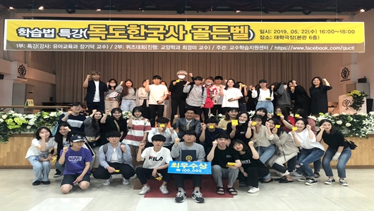 [김천=경북IT뉴스] 김천대학교(윤옥현 총장) 교수학습지원센터에서는 지난 22일 대학극장(본관 6층)에서 재학생들의 올바른 역사인식과 지역에 대한 관심을 고양시키고자 독도 한국사 골든벨 특강 및 퀴즈대회를 개최했다.