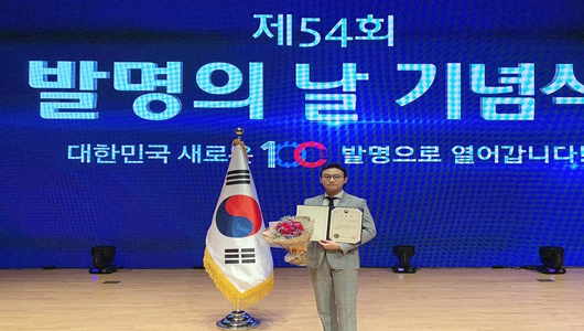 [구미=경북IT뉴스] 지난 27일 서울 COEX에서 열린 ‘제54회 발명의 날’기념식에서 금오공과대학교 산업공학부 4학년 최지웅(남·26) 학생이 특허청장 표창을 수상했다.